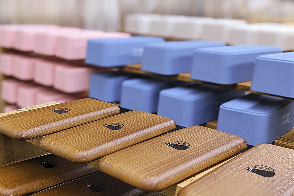 山中塗の産地特性を活かし、主にウレタン塗料の吹付け塗装により着色します。